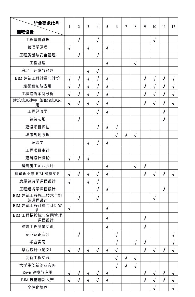 • 工程造价专业课程手册