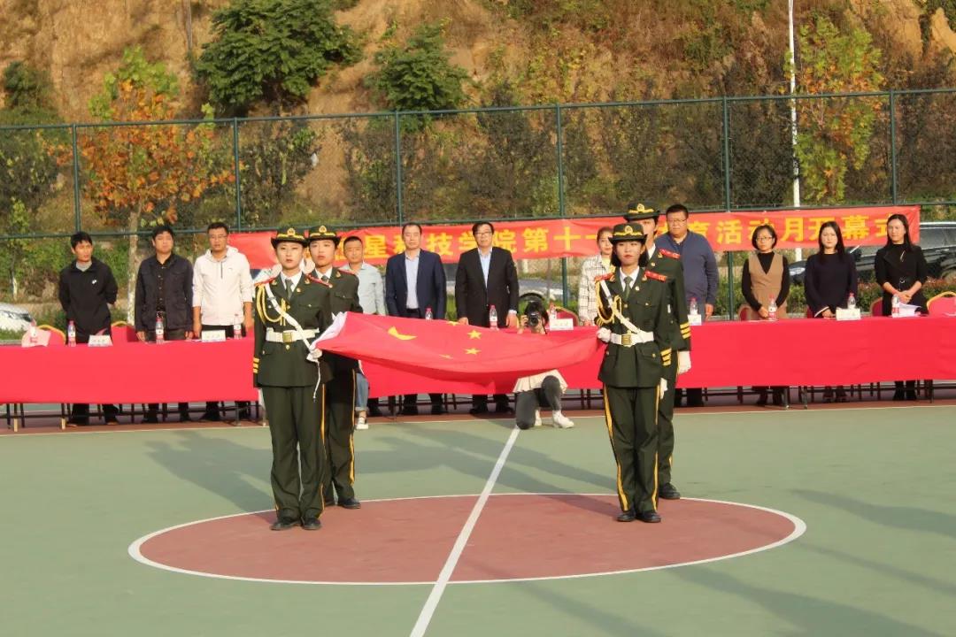 来自各学院的运动员代表在此集结,他们朝气蓬勃、意气风发;他们的口号洋溢热情、铿锵有力,充满自信,展示恒星学子的青春风采。国旗护卫队迈着整齐划一的步伐进入篮球场,那催人奋进的步伐仿佛有热情在释放,那积极向上的魅力仿佛有青春在燃烧。
